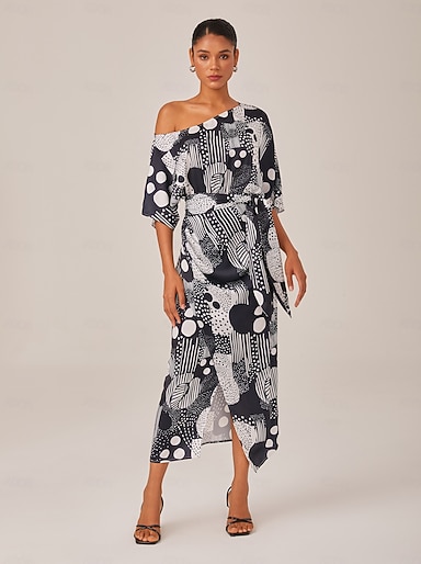 Black Glitter Off-Shoulder Cinched Knit Dress